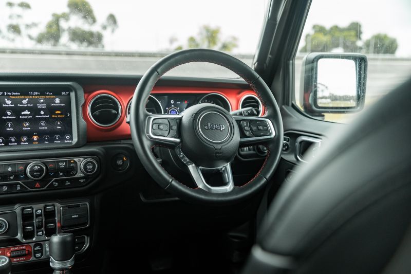 نکته دیگری که باید به آن توجه کنم رویکرد غیرمعمول جیپ به کنترل فرمان است. بهجای دندههای دست و پا، کنترلهای صدا و پرش را بهعنوان سوئیچهای کلید پشت فرمان در اختیار دارید، که ممکن است کمی طول بکشد تا به آن عادت کنید.